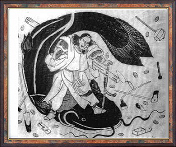 常陸(茨城県)鹿島神宮の要石の伝説によれば昔その地方にしばしば地震があり、それは地下に大鯰がいてあばれるからだと云うので、鹿島の神々達が相談の上大きな石の棒(石剣)で鯰の頭を釘刺してしとめました。それが即ち要石で地震の際にはこの要石は殊の外大いに揺れるがどうしても抜くことが出来ないと云われて来ました。